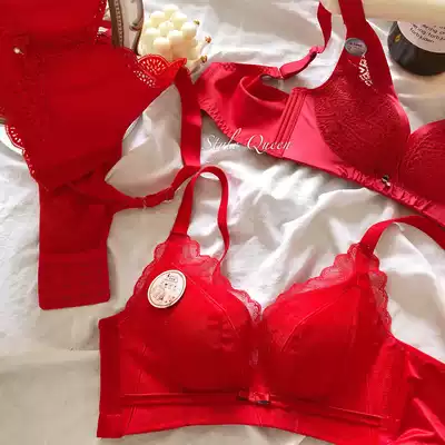 This year's big red underwear suit women's thick Cup wedding bra on the top to gather lace sexy bra