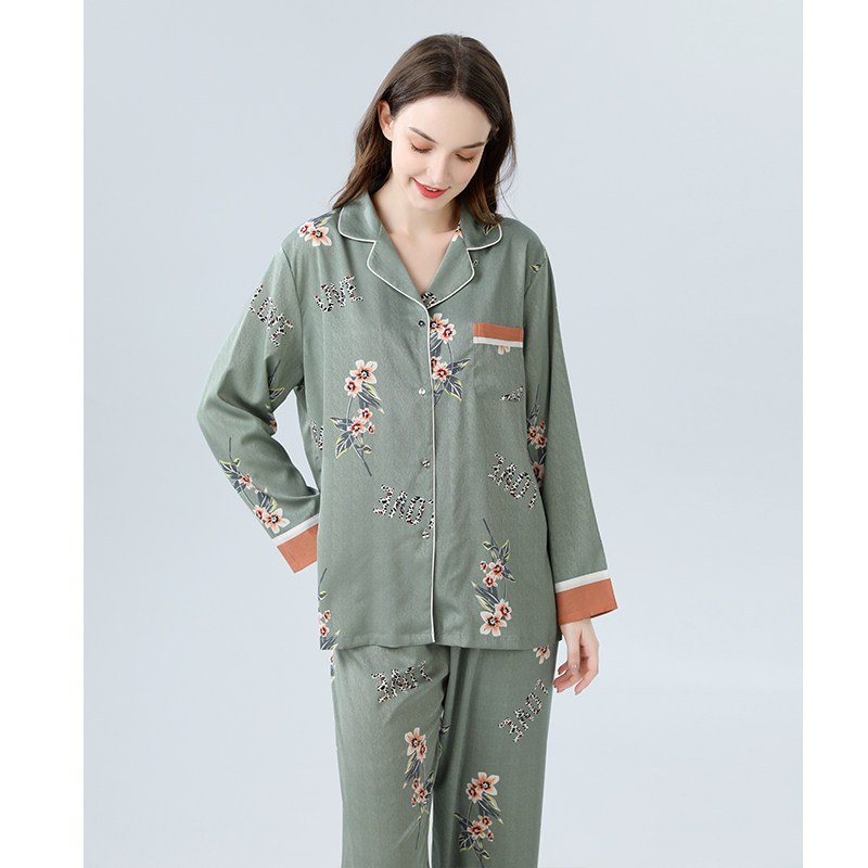 IIZZINI original 2022 pyjamas women's spring and autumn long sleeves ice silk Chinese windy cordiera luxury home suit suit