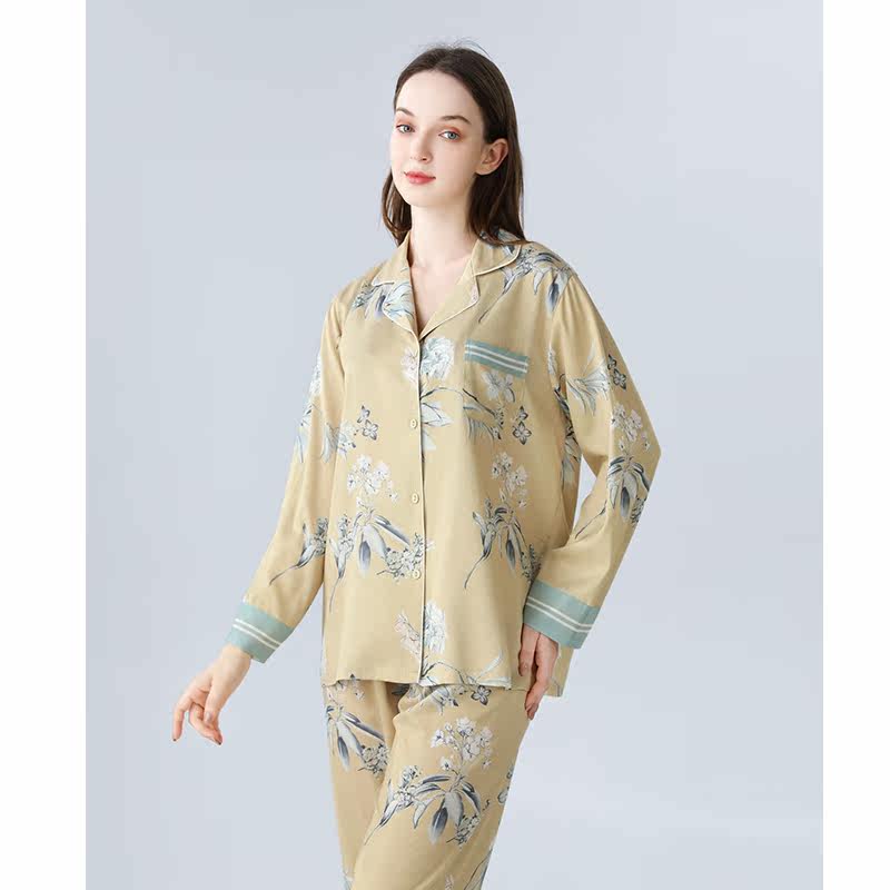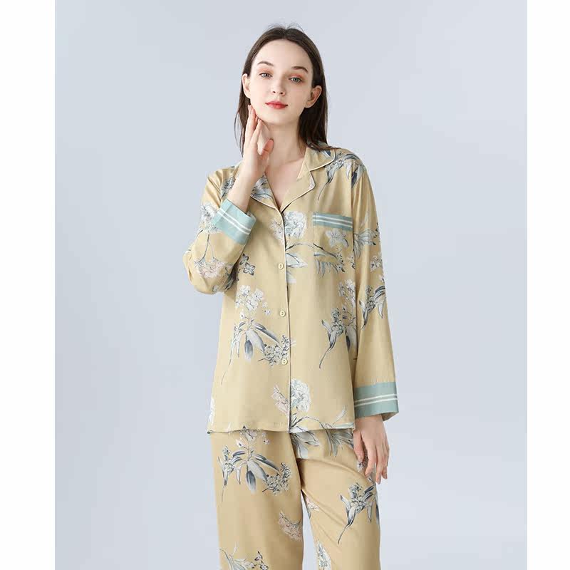 IIZZINI 2022 pyjamas women's spring and autumn long sleeves ice silk Chinese windy flowers luxurious and long pants home suit suit