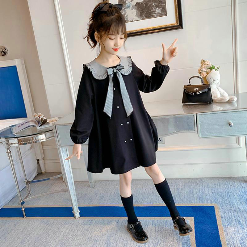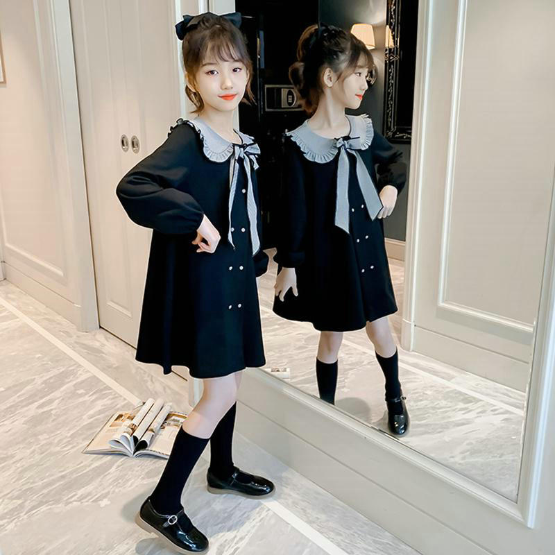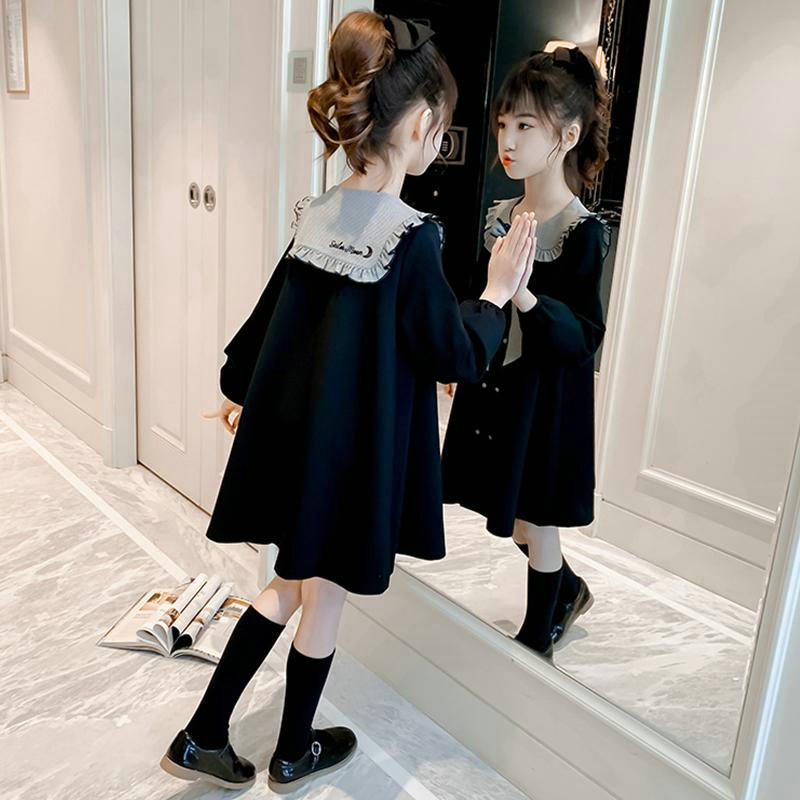 Net red girl dress spring dress 2022 new children's long sleeves Korean version of the foreign style academy in the wind big boy princess skirt