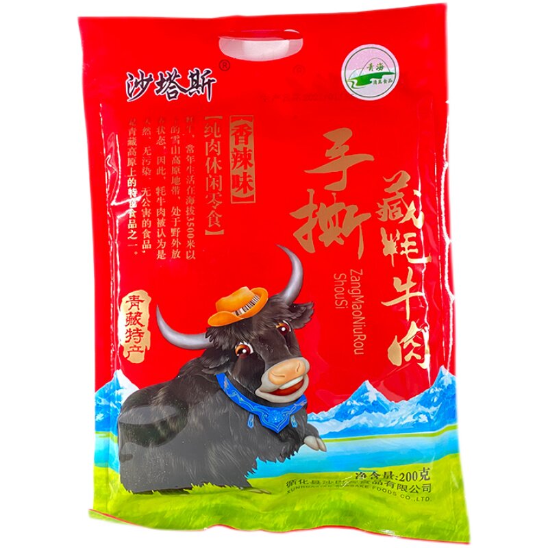 Shatas Halal Beef Jerky Qinghai Specialty Qinghai-Tibet Plateau Shredded Yak Snack Snack Spicy Spicy 200g