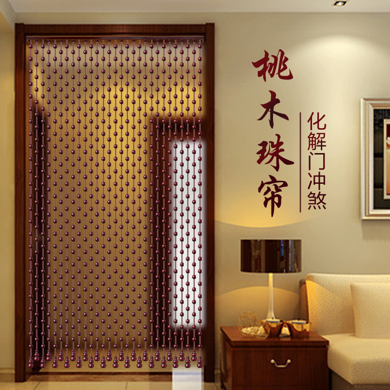 Peach wood bead curtain Door curtain partition window Door to powder room entrance hole-free crystal curtain Balcony kitchen brake