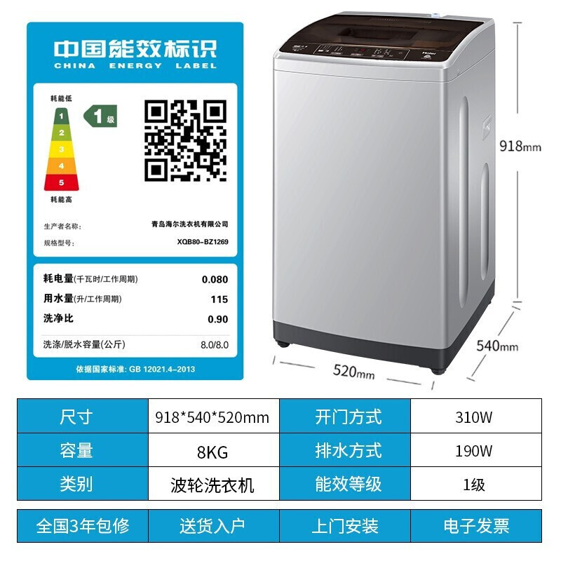 Haier Haier XQB80-BZ1269 Haier 8 kg washing machine full automatic household wave wheel prodigy small