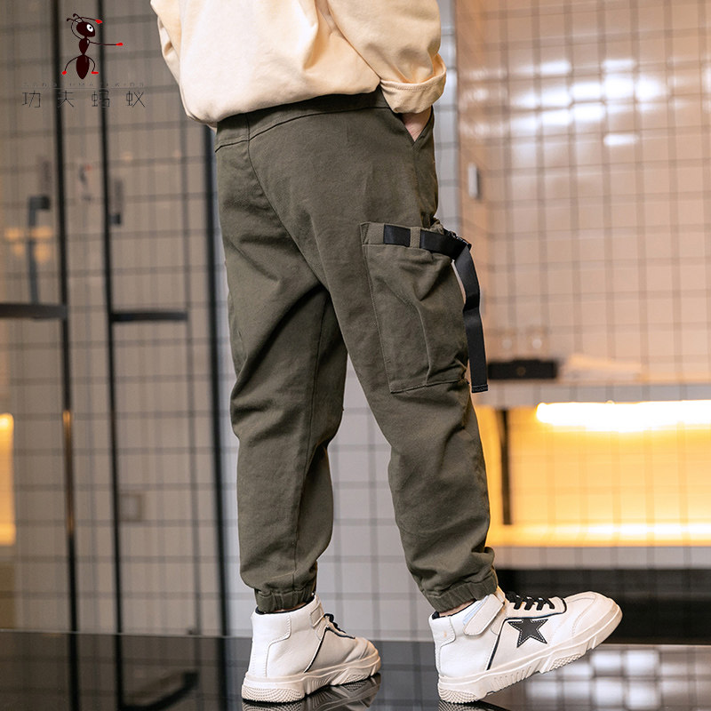 Boy Scouts green trousers in loose spring and autumn trousers in large children's casual pants pure cotton S0092