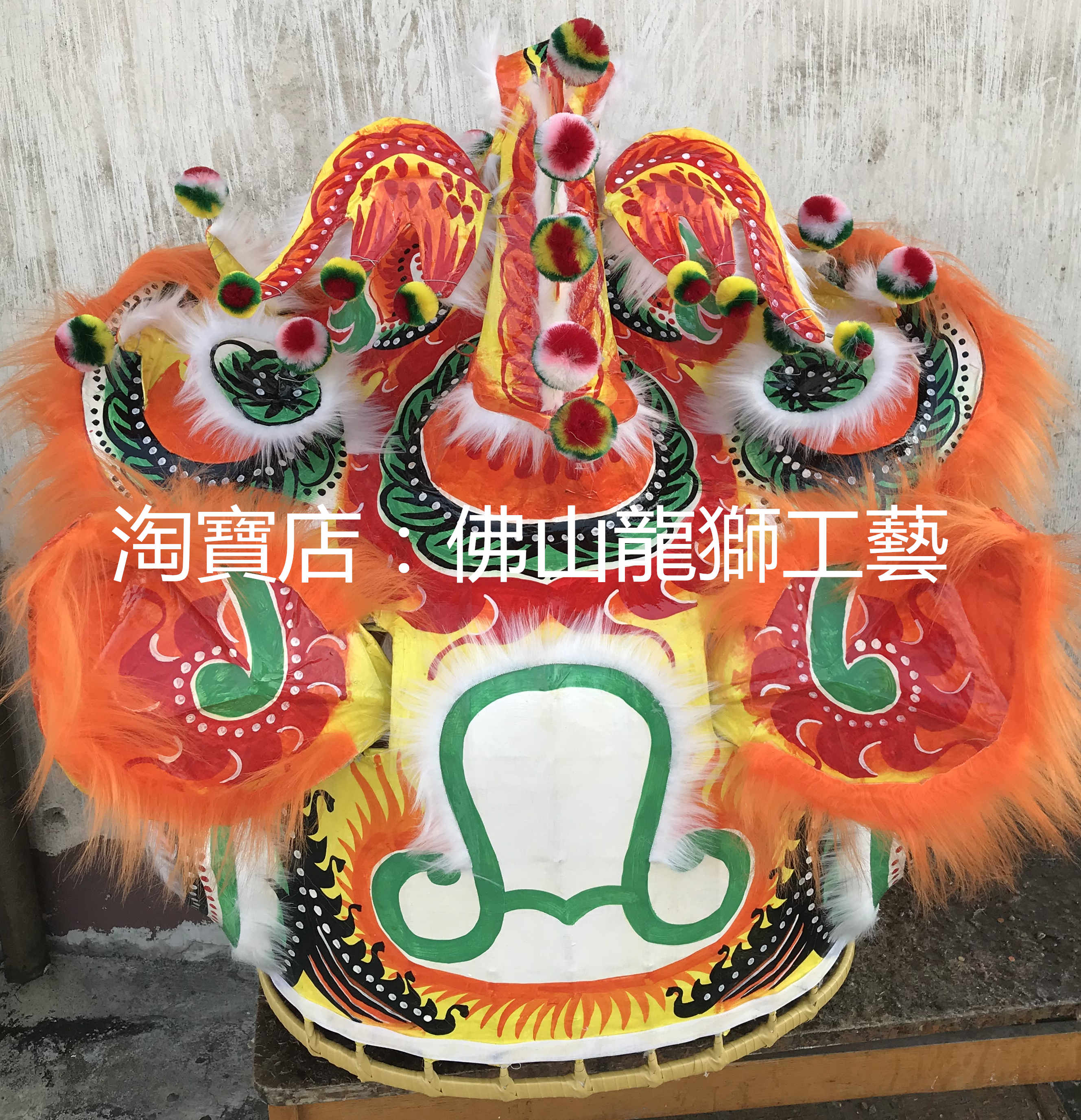 Foshan traditional round cheek color Liu Bei orange hair eagle horn lion head set ) eagle horn ) Foshan wake lion ) Foshan autumn color