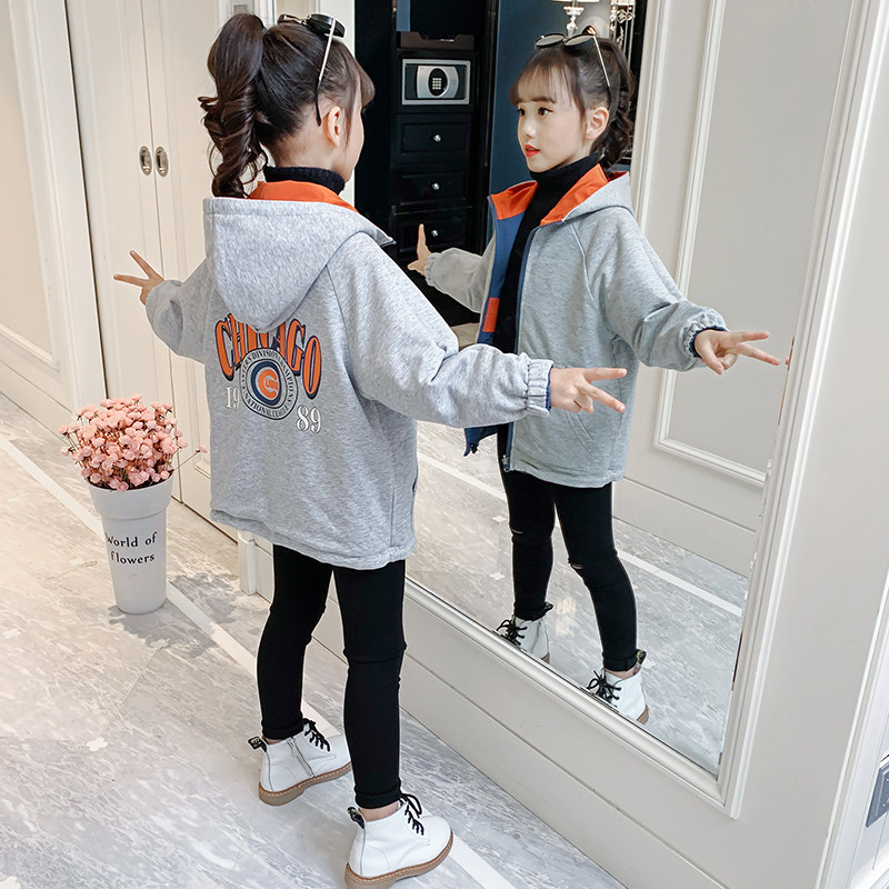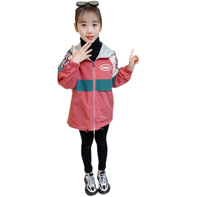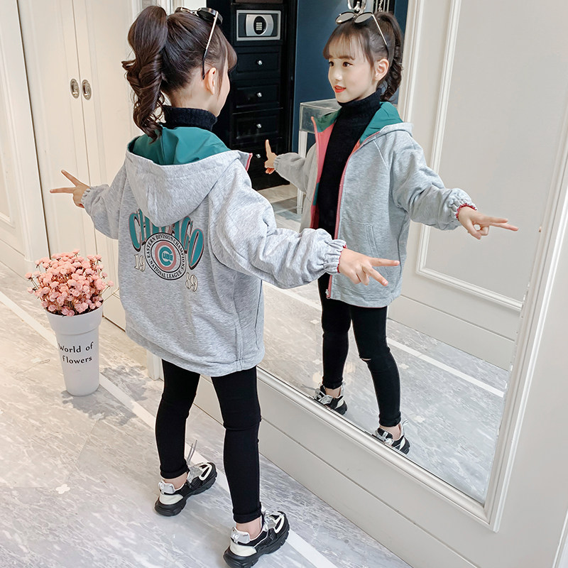 Girl's jacket 2022 new spring clothing Lianhood cardio-hoodie CUHK Scout Two sides wearing the wind and casual lat-shirt tide
