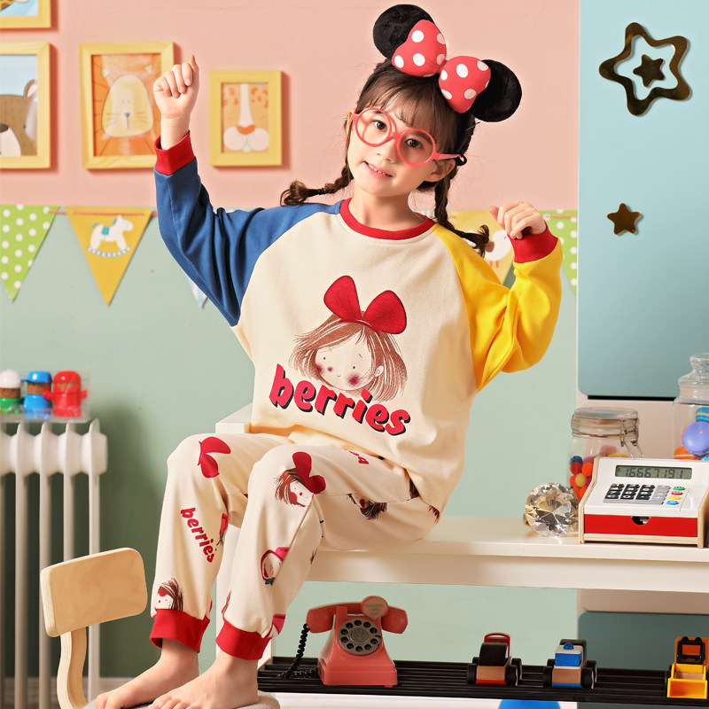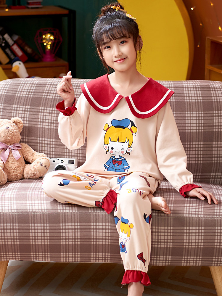 Children's pajamas Spring and Autumn pure cotton long-sleeved thin section girls middle and large child princess section Baby girl home clothes set
