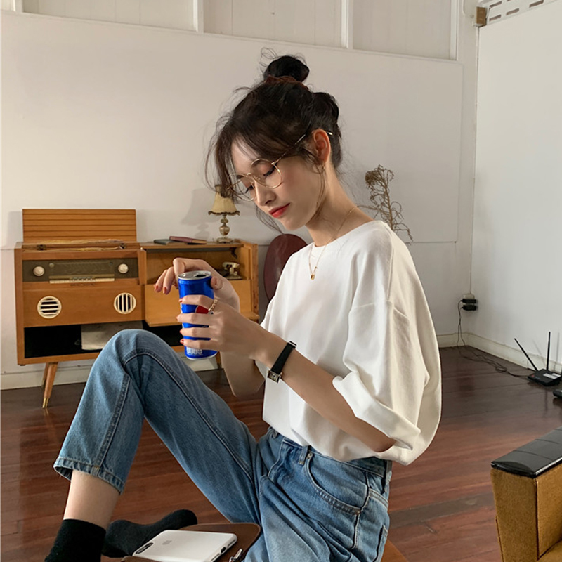 2022 summer dress new loose color T-shirt female short sleeve student Bathyme printed pure cotton half sleeve upper clothes