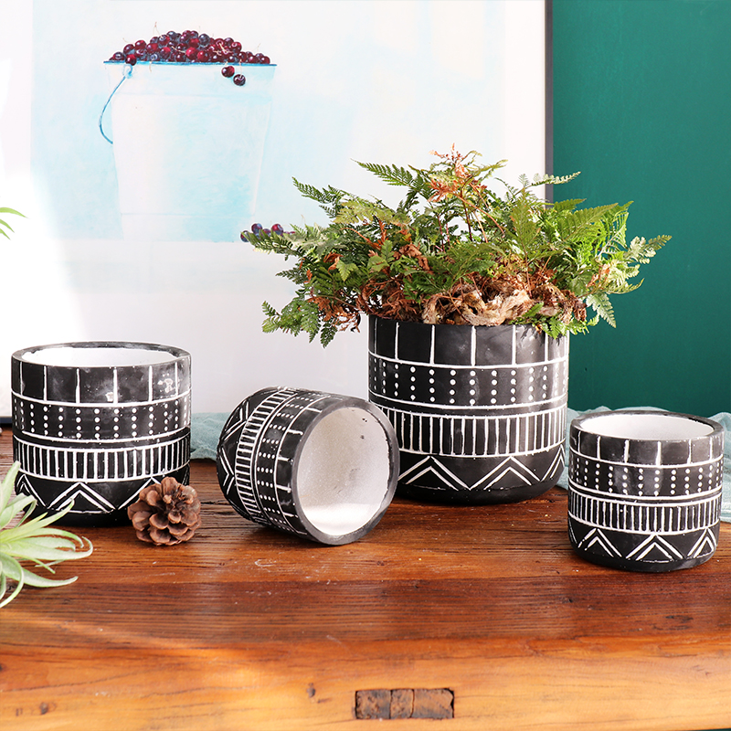 Art Ethnic Wind Cement Flowerpots Planting Potted Green Plant Multi Meat Small Floral tabletop Balcony Garden Decoration Pendulum