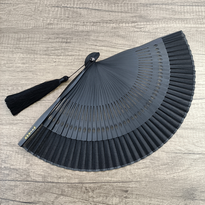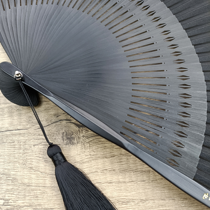 Clear Cabin Black Real Silk Fan China Wind Ancient Wind Portable Folding Fan Japan Style And Wind Matching Hanfu Qipao