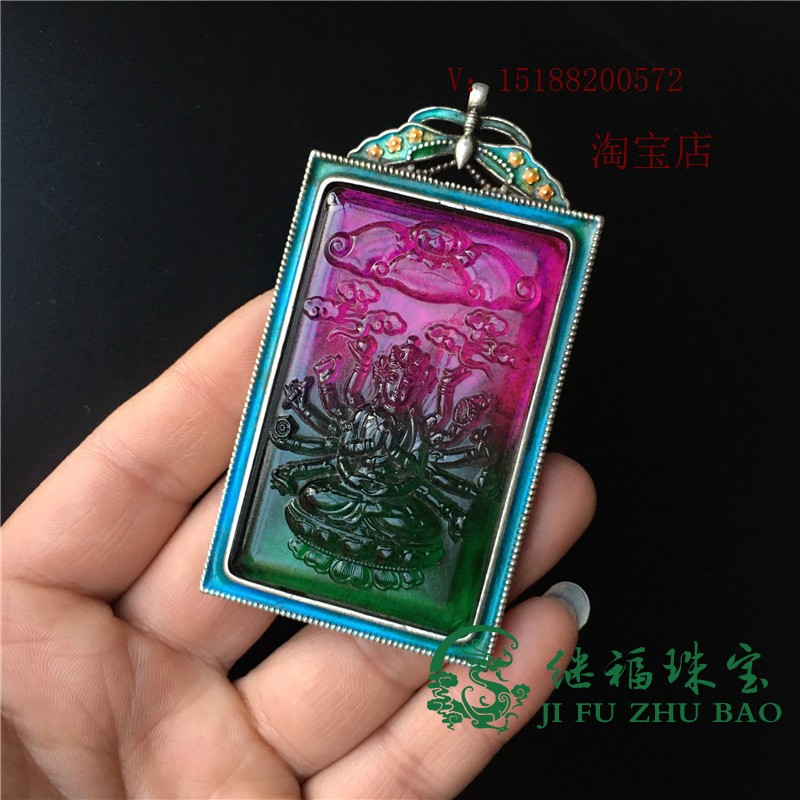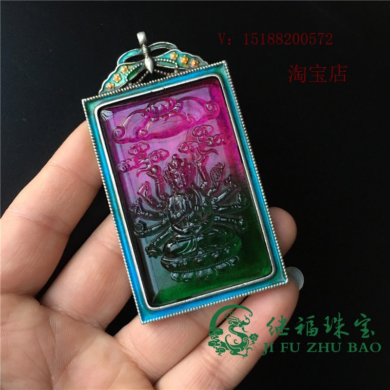 Nepal handmade old Tibetan silver court Thousand Hands Guanyin Buddha statue tourmaline gemstone old object silver pendant necklace accessories