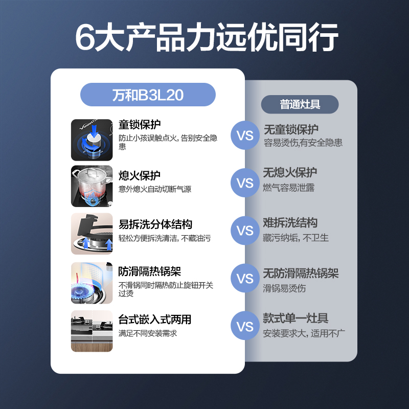 Wanhe B3 B6 gas stove gas stove double stove desktop embedded liquefied gas natural gas stove household kitchen