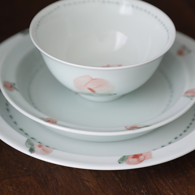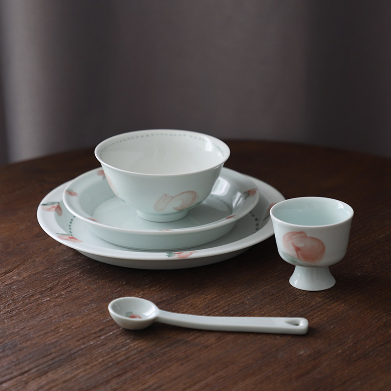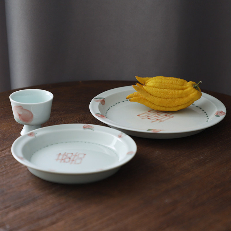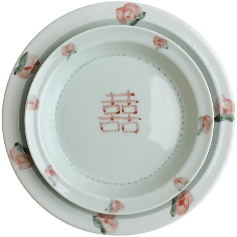 Peach Delight Handmade Round Dishes Steak Pan Vegetable Dish Home Breakfast Dish Jingdezhen Hand-painted Ceramic Cutlery-Taobao
