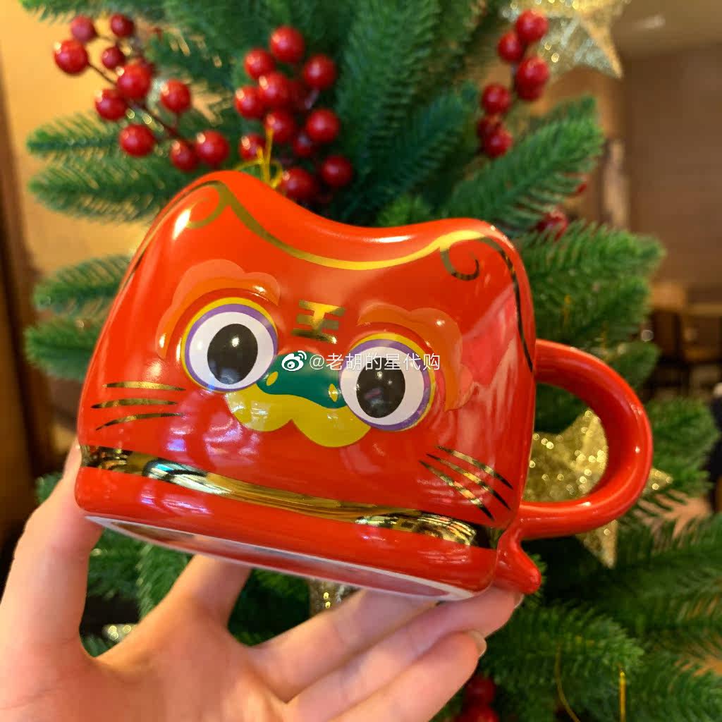 Starbucks 2021 New Year gift nifty tiger head shoes shape ceramic drinking water mark cup with lion dance cow tea leak