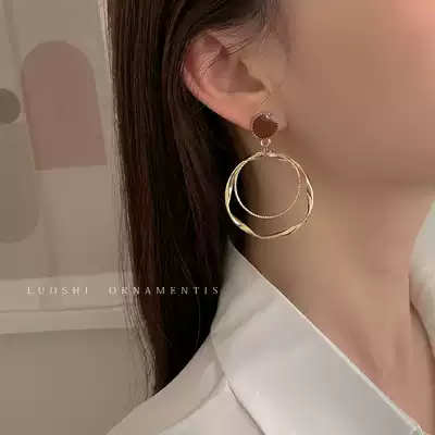 Advanced sense earrings female 2021 New Tide ear needle retro Hong Kong wind earrings Korean temperament Net red pop earrings