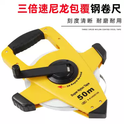 Three-speed nylon coated steel tape ruler 100 meters 50 meters high-precision waterproof portable stainless steel engineering large tape ruler