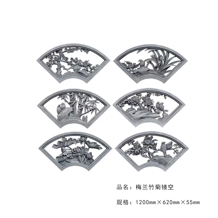 Ancient building brick carving fan-shaped cement window flower Antique wall flower window plum orchid bamboo chrysanthemum brick carving hollow window Chinese relief