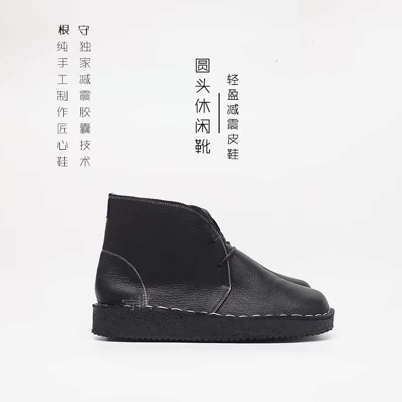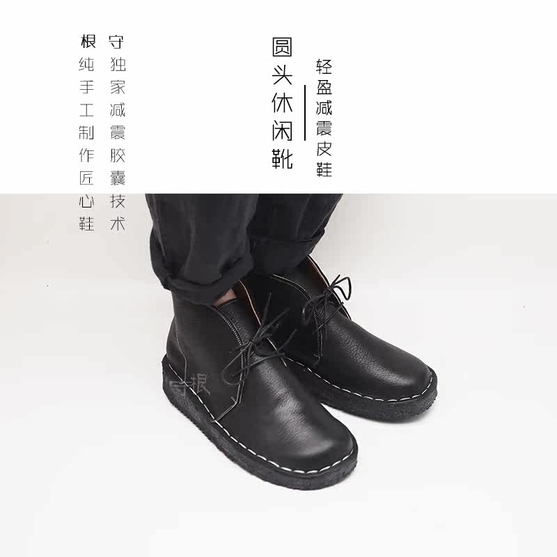 Retro Round Head Black Thick Bottom Lacing Man Short Boot Light Weight Shock Absorbing Short Boot Vibram Anti Slip Root