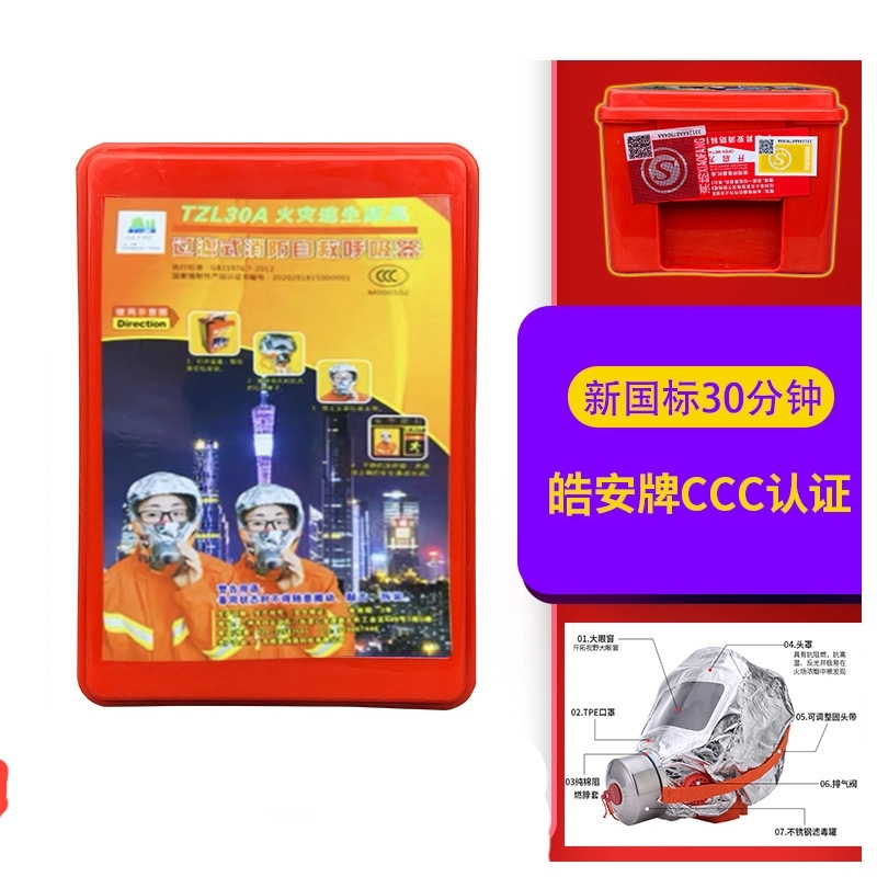 At the beginning of salt, fire mask, smoke-proof, fire-proof, gas mask, fire escape respirator, hotel household 3C national standard