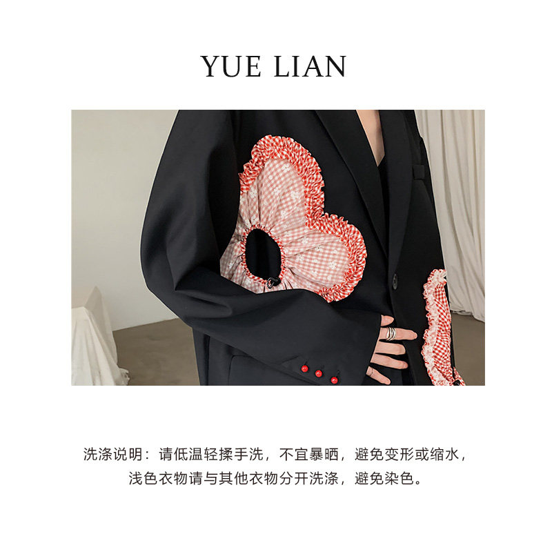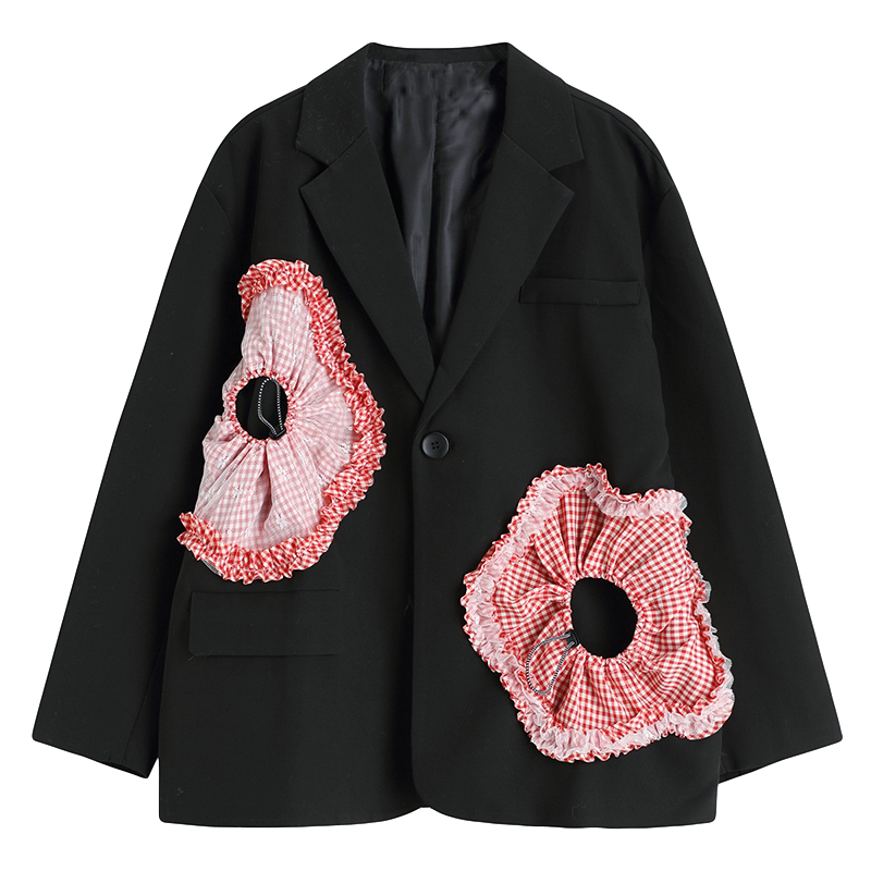 (Hong Kong Designer Brand) Suit Jacket Woman Superior Feel Fried Street Black Design Sensation Small Crowdsplicing Collision