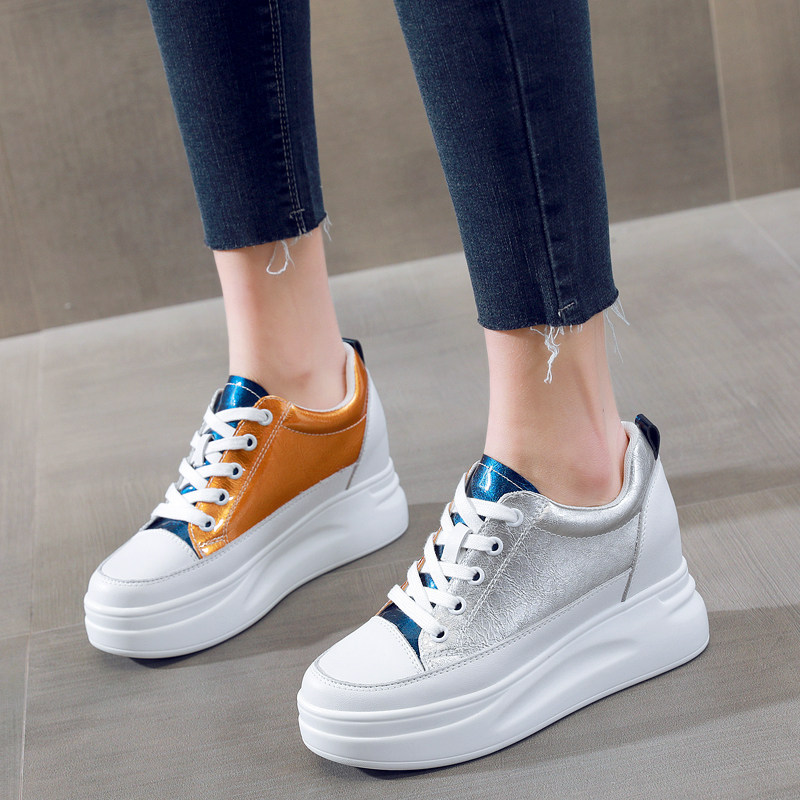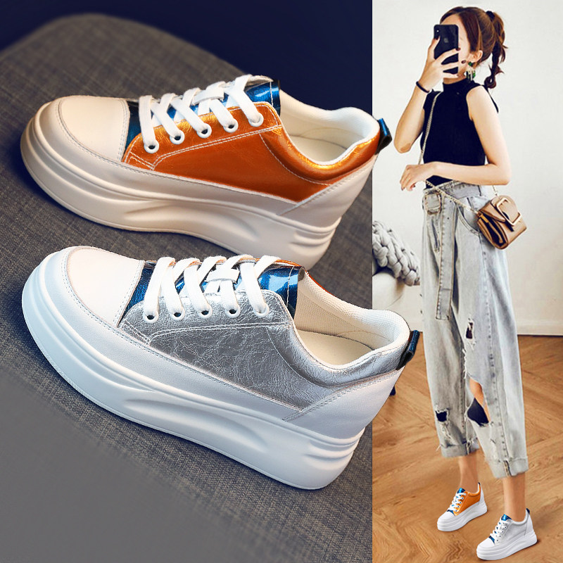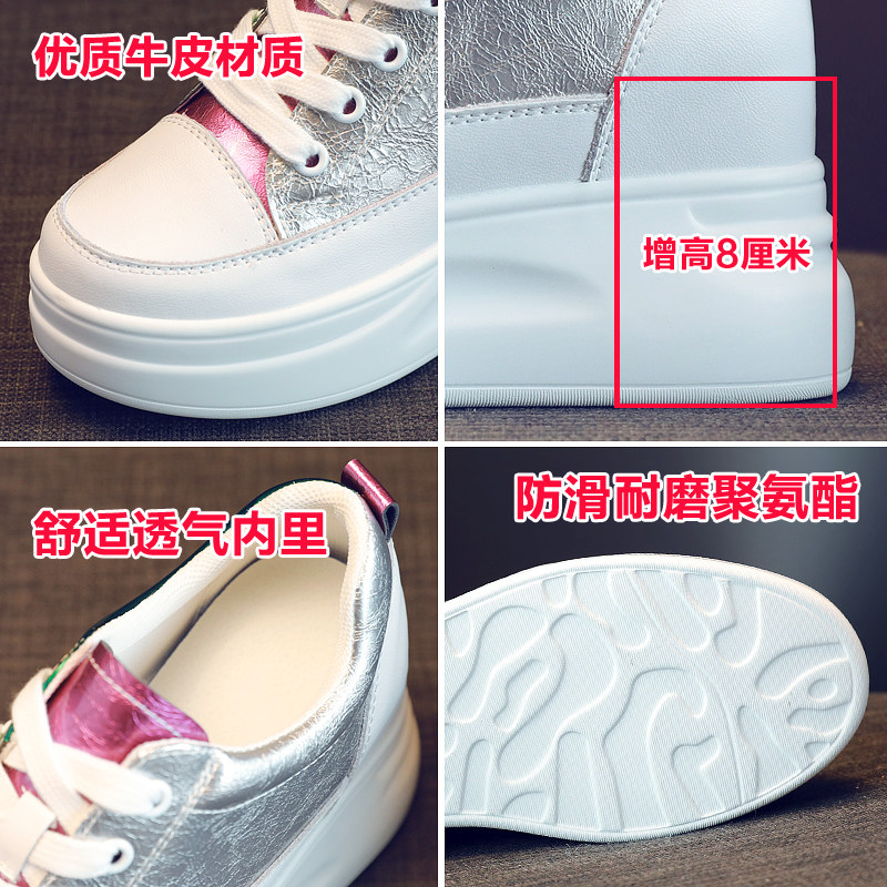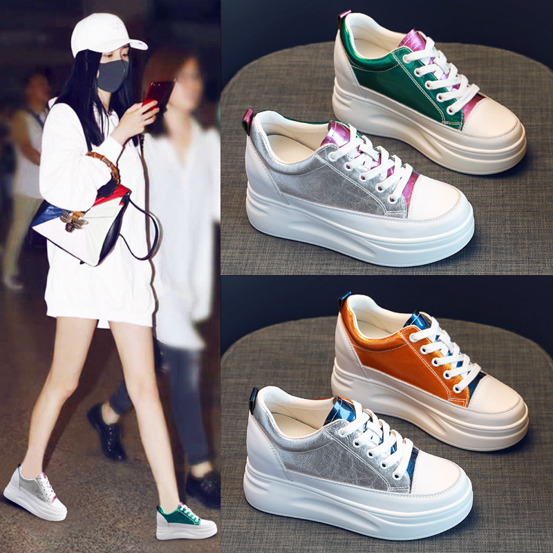 Net red inside heightening small white shoes women 2021 spring new genuine leather 100 hitch-proof thick bottom 8cm casual sneakers