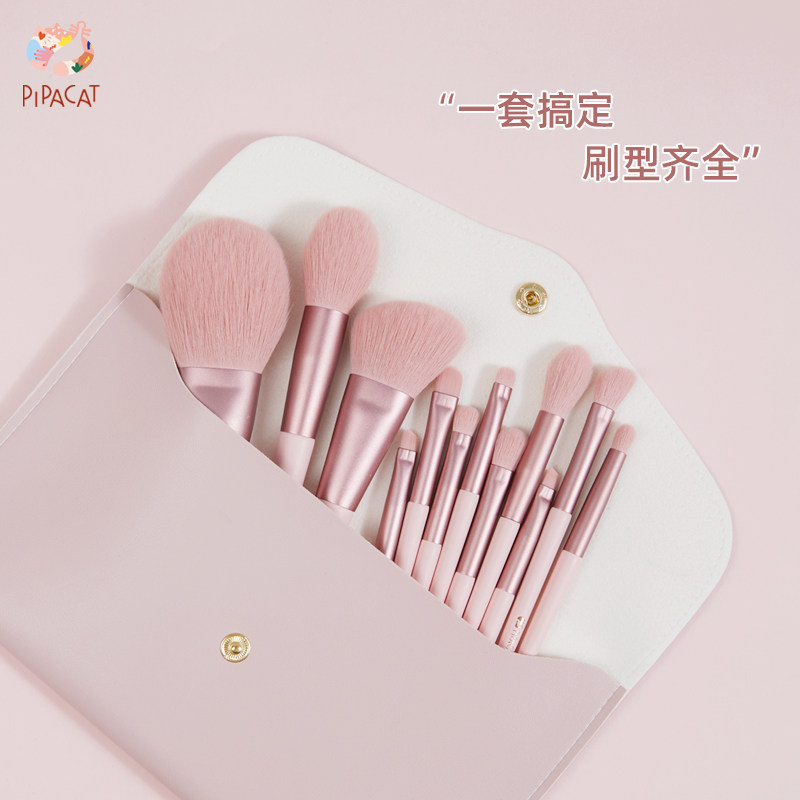 Pipa cat powder peach 12 makeup brush set Cangzhou full set of ultra-soft affordable loose powder brush eye shadow beauty tools