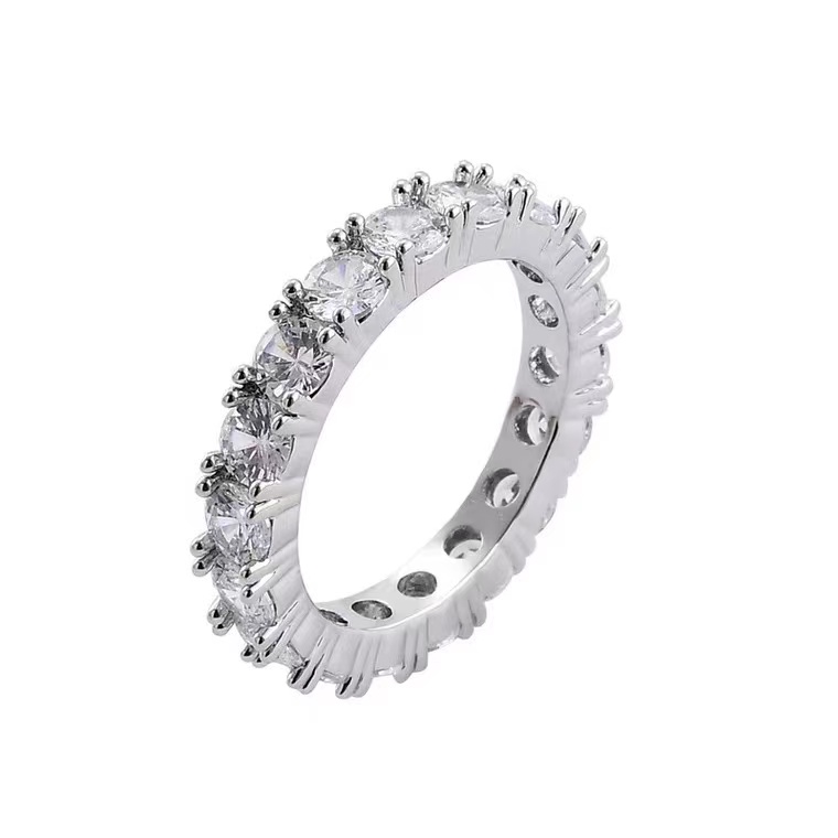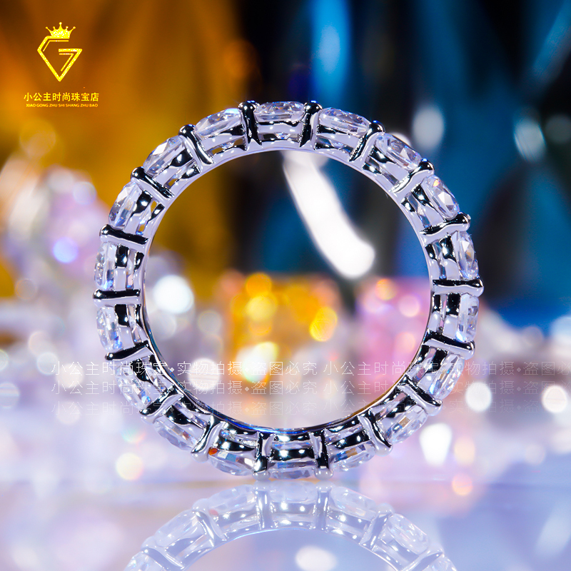Mosanstone diamond ring, platinum, full diamond, row diamond ring, 18K platinum group, set, stacked, wearing ring, fashion ring for men and women