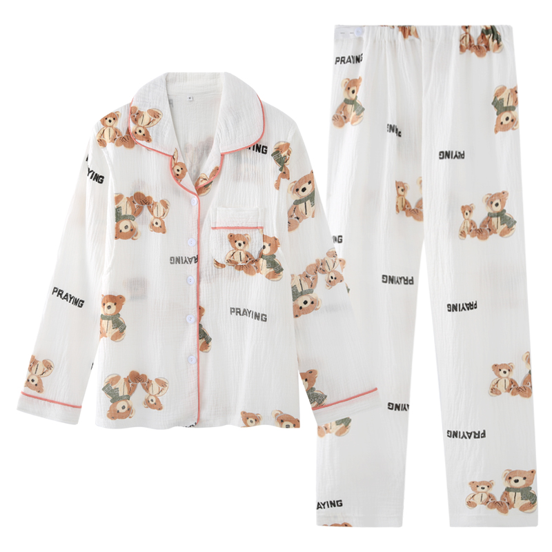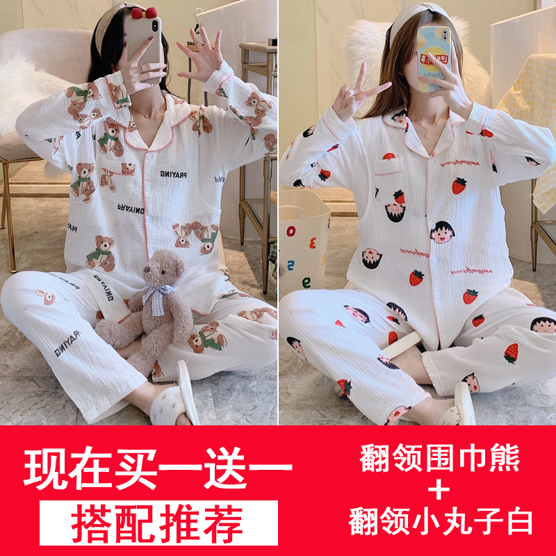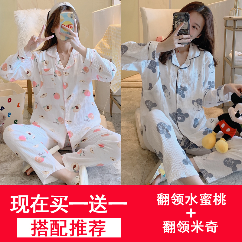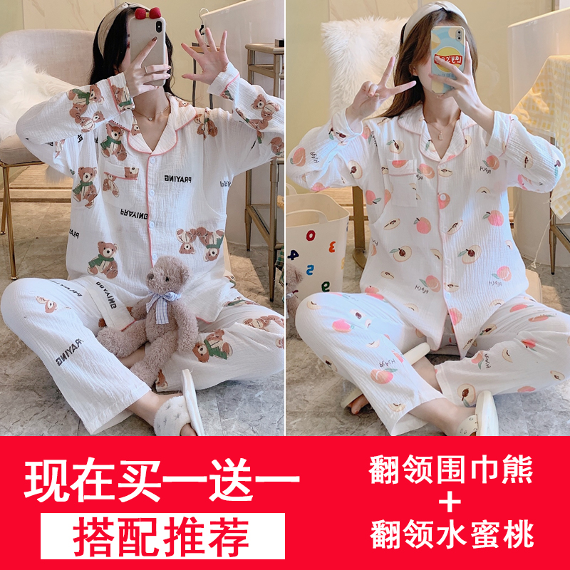 Confinement cloth spring and autumn gauze cotton nursing sweat-absorbing pregnant women pajamas postpartum feeding March 4 thin home clothes