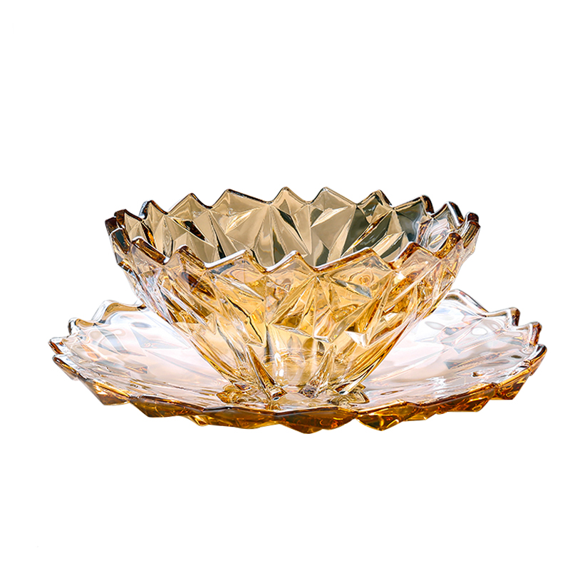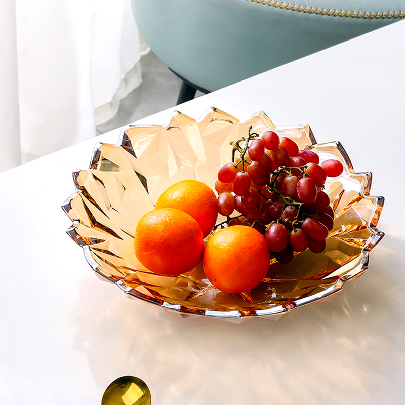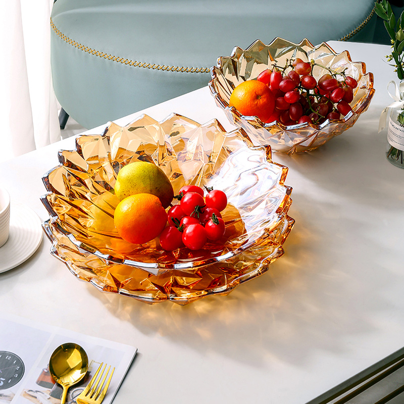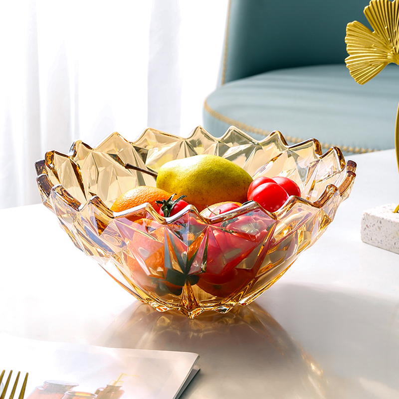 Large Crystal Glass Fruit Plate American Ice Cube Creative Fruit Plate Light Luxury Home Living Room Conference Fruit Plate Candy Basin