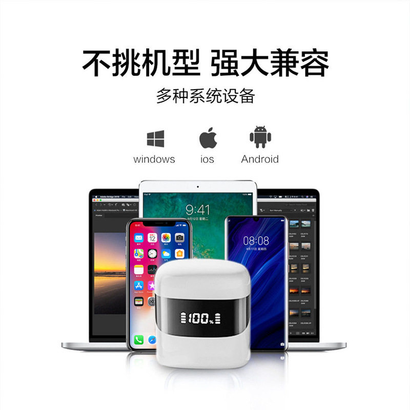 BEBF true wireless bluetooth TWS headset binaural sports game suitable for Huawei digital display LED power display S1