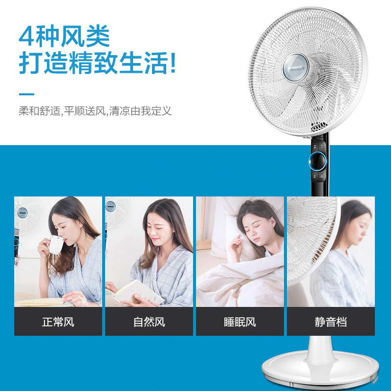 Emmett electric fan home vertical floor fan bedroom silent shaking head remote control seven leaves big wind 16 inch living room