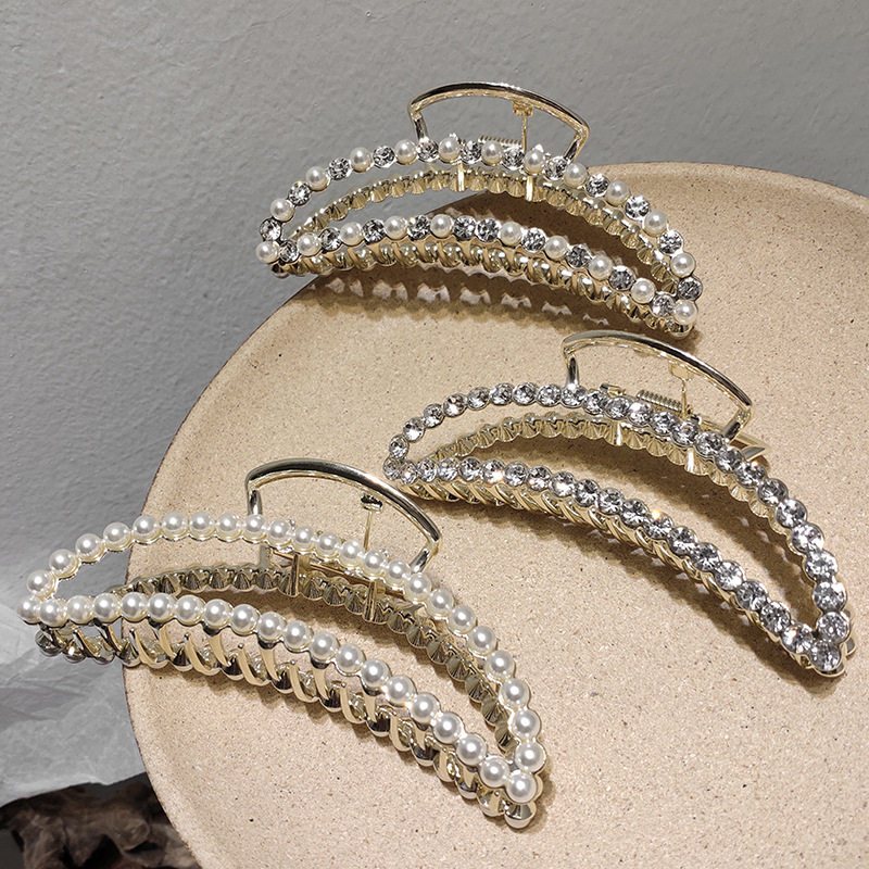 Korea Grab Clip Dongdaemun Alloy Rhinestone Pearl Grab Clip Simple Temperament Lazy Coil Hair Large Crescent Hair Clip