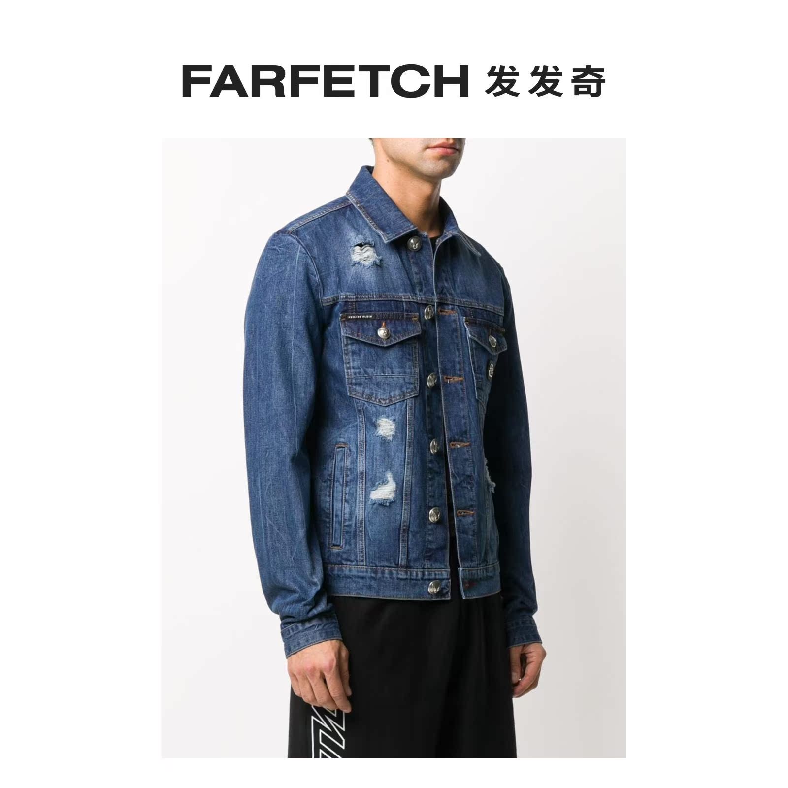 Final Sale]Philipp PleinMen's Get a Grip Distressed Skull Denim JacketFA