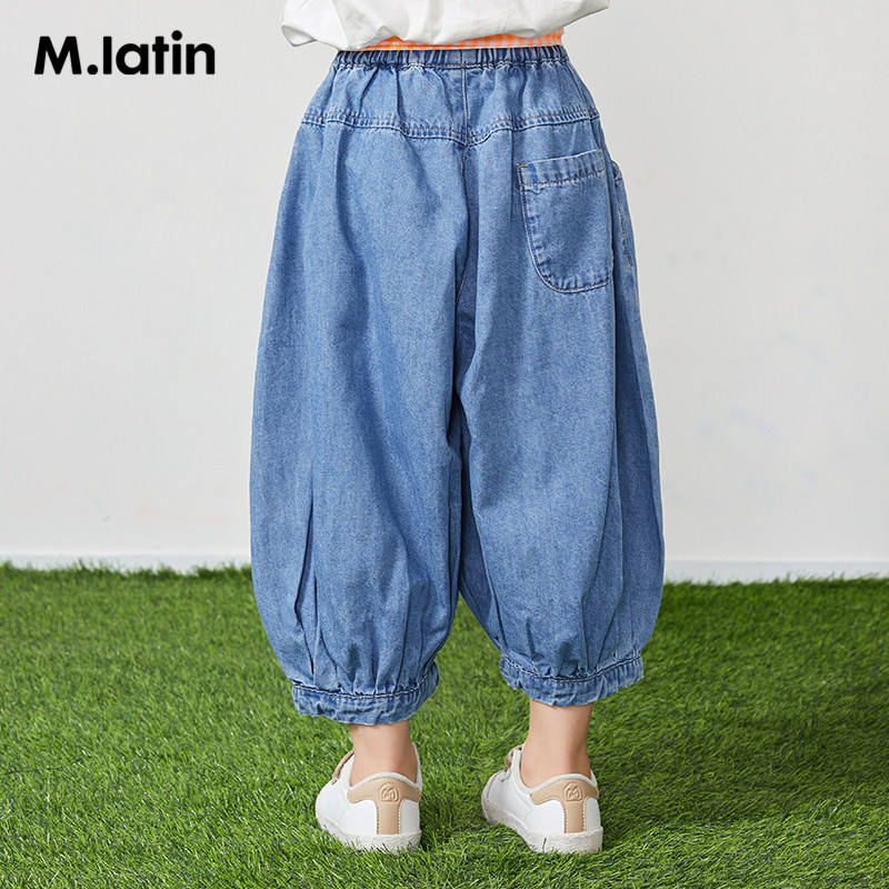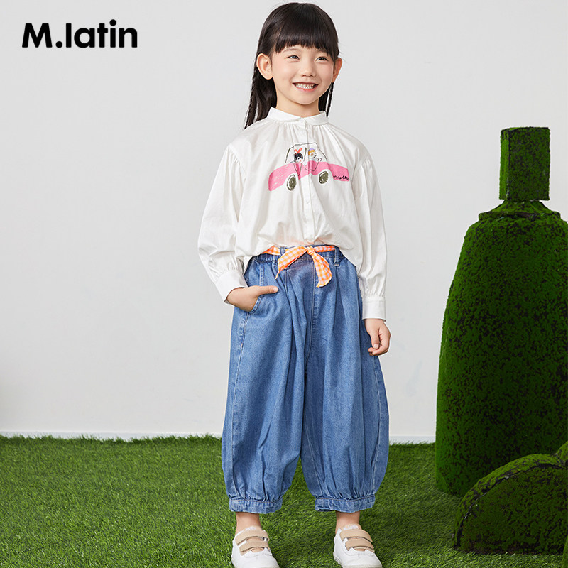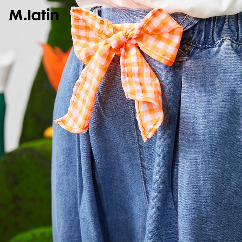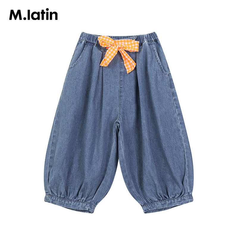 Malatin Boy Dress Girl Great Boy Denim Trousers 2021 Spring Autumn New Bright Color Butterfly Knot Belt Design Broadlegged Pants