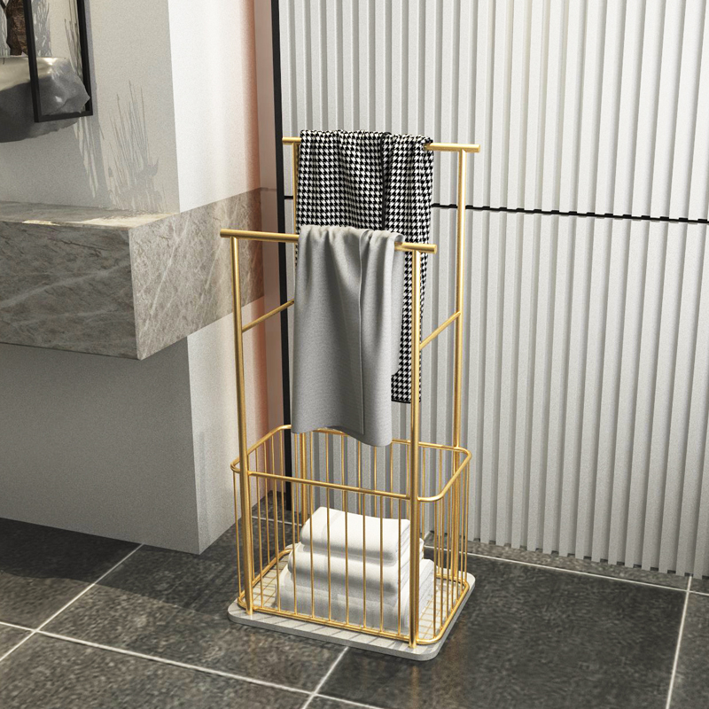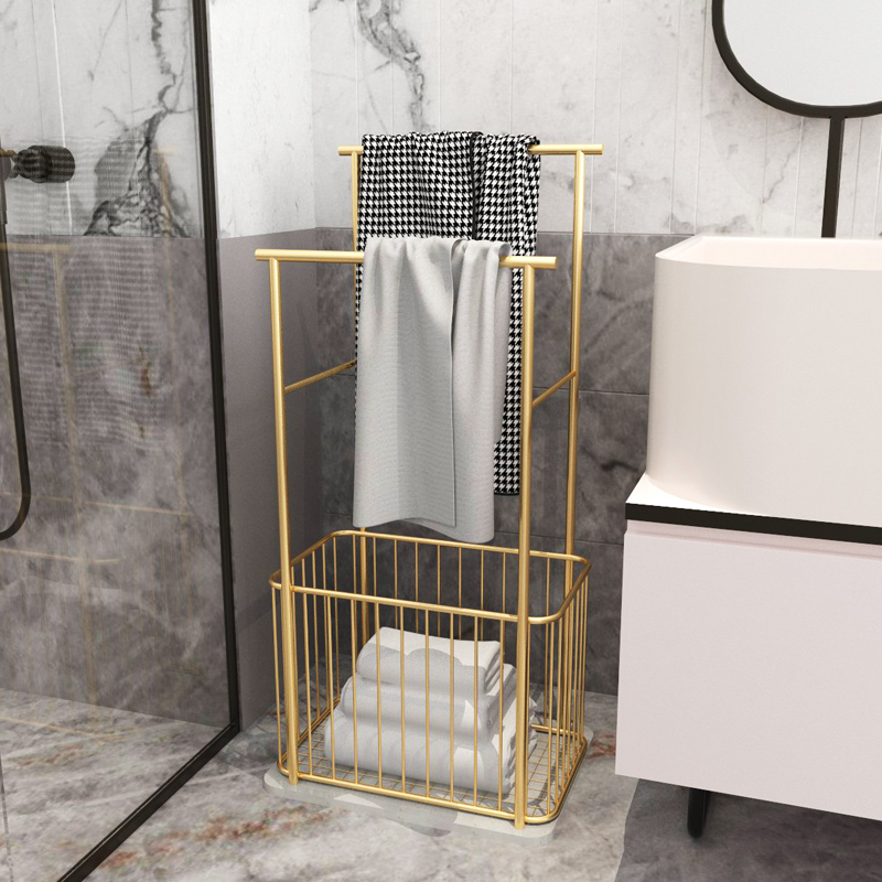 Nordic marble bathroom shelves Floor-to-ceiling bath towel racks Wrought iron toilet storage racks Light luxury gold towel racks