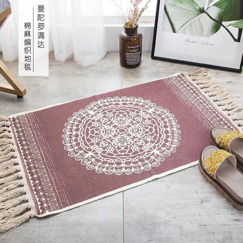 Carpet Hand Woven Cotton Linen Carpet Rug Bedside Rug
