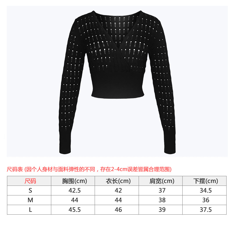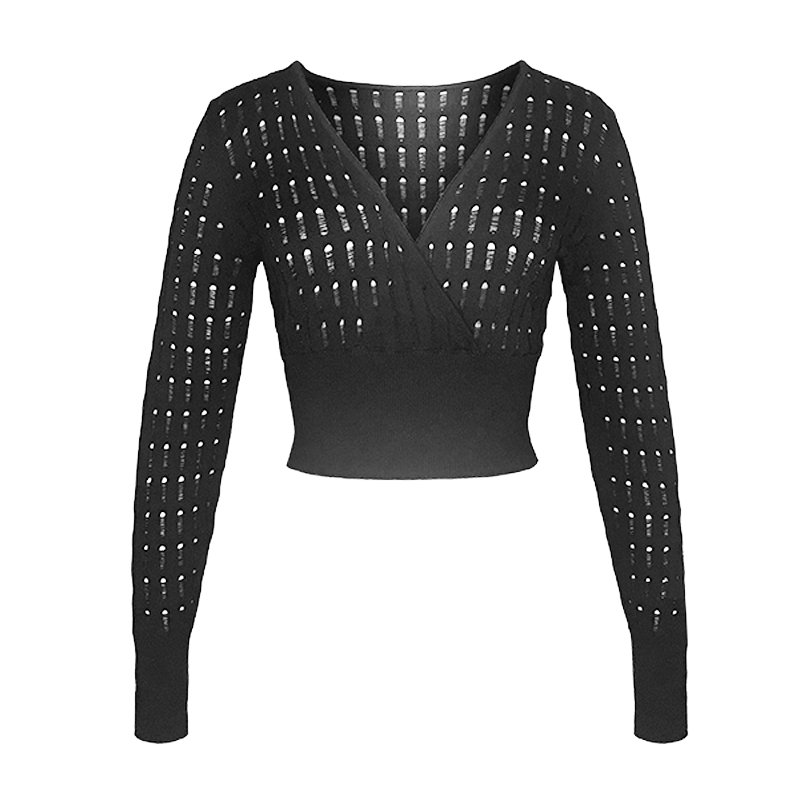 Cardinals Spring and Autumn Cotton Knitted Hollow V-collar Short Sleeve Dance Training Sweater High Loist Training Costume