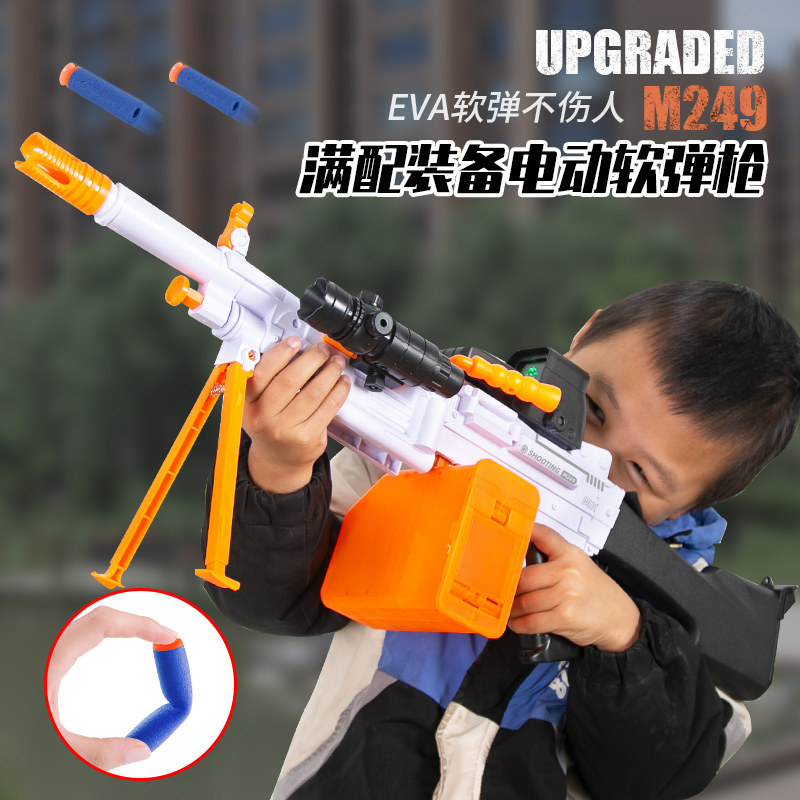 M249 Electric Burst Big Pineapple Soft Shotgun Boys Toy Light Machine Gun Kids Eat Chicken Equipped Heavy Machine Gun