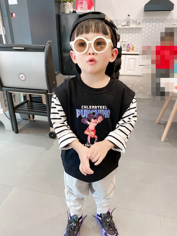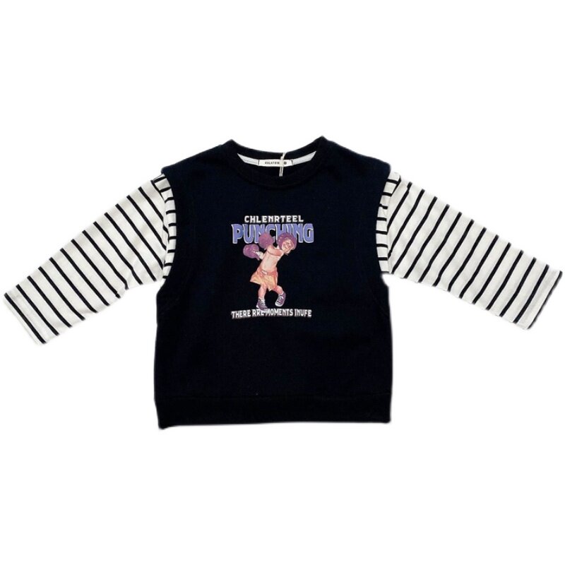 Boy 2021 Spring loaded hair ring cotton long sleeve thick cotton TT shirt child baby spring autumn pure cotton fake two cartoon blouses