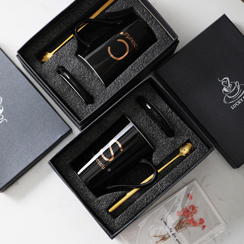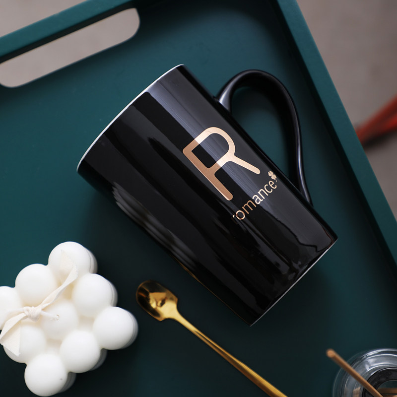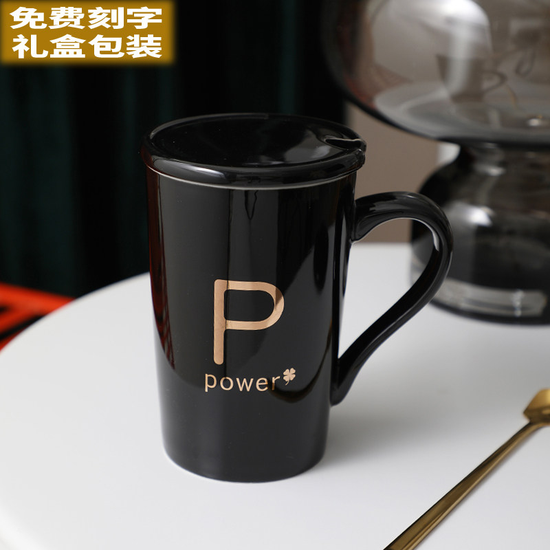 Ceramic cup lettering with lid spoon Mark cup gift box Last name Creative letter cup Men's and women's water glasses LOGO free custom