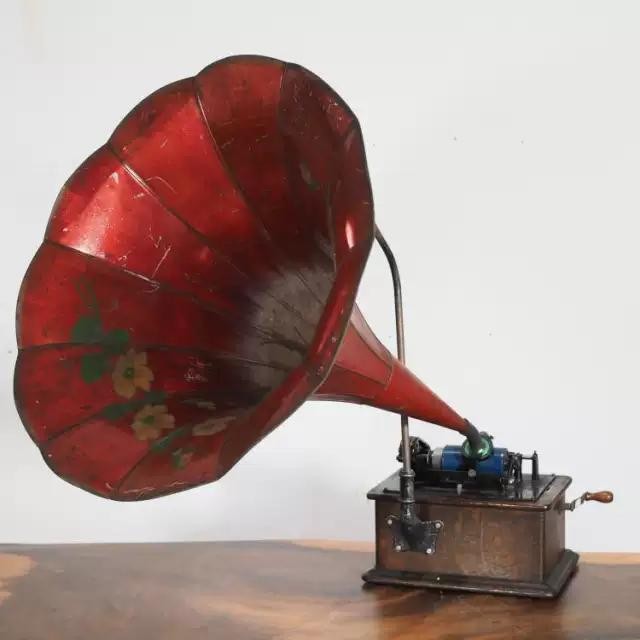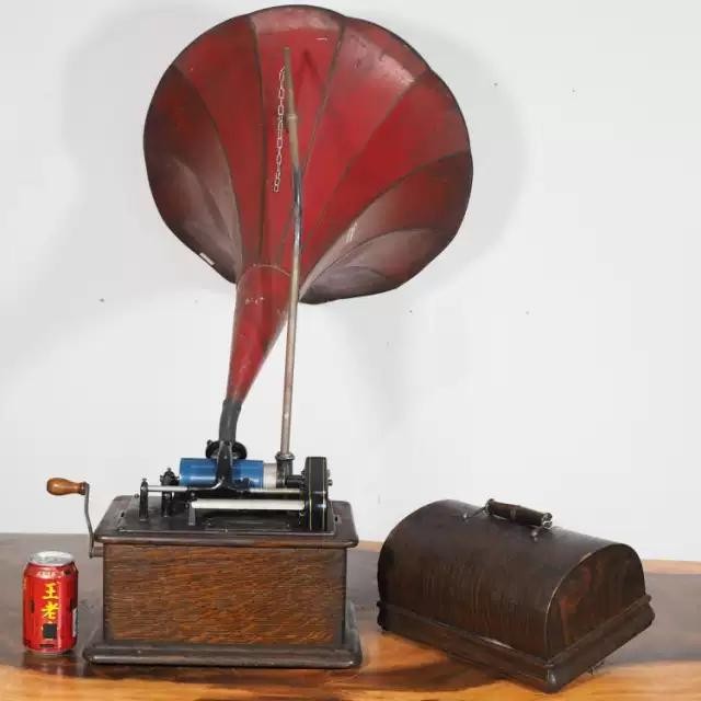 1910s Western antique Edison Edison large horn wax cylinder phonograph hand shake record player with excellent sound quality