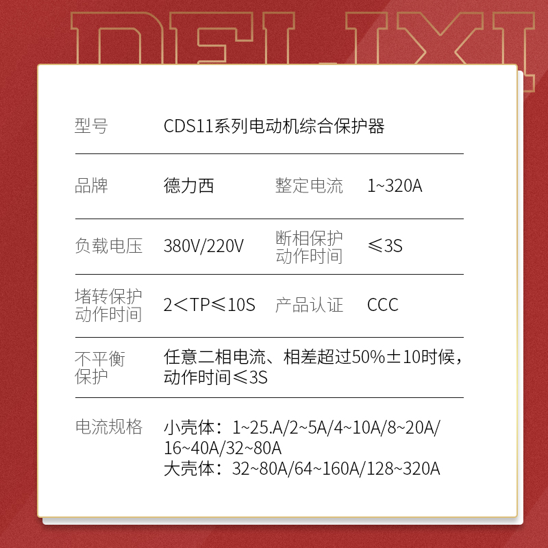 Delixi CDS11 motor integrated protector phaseless overload adjusted current 1A-320A protector