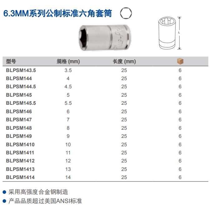 American Blue Dot Metric 1 4 Small 6 3mm Series Standard Long External Hexagon Sockets and Accessories Auto Repair Tools
