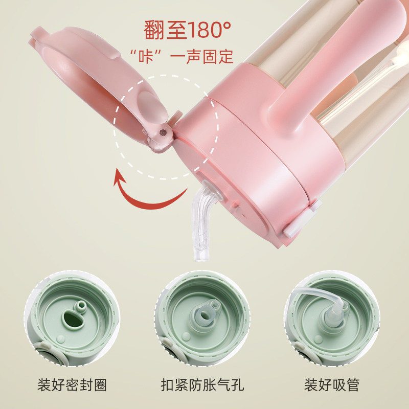 (Double lid) pink 300mL (ppsu material grip + harness + suction nozzle + cup brush)