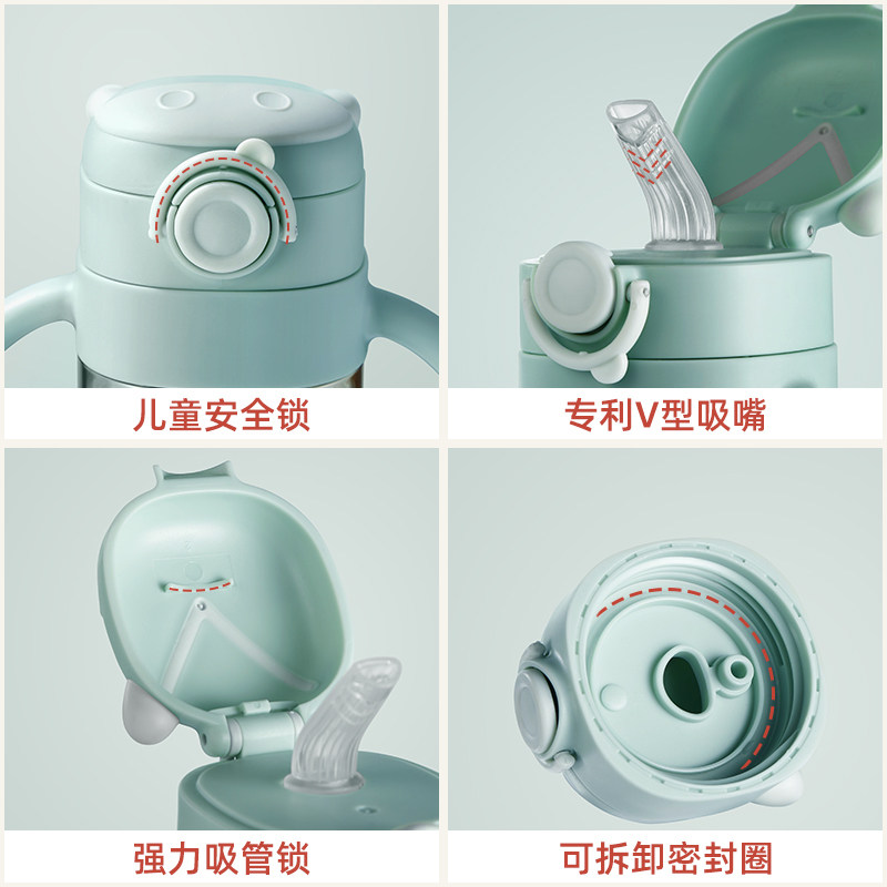 (Double lid) green 300mL (ppsu material grip + strap + suction nozzle + cup brush)