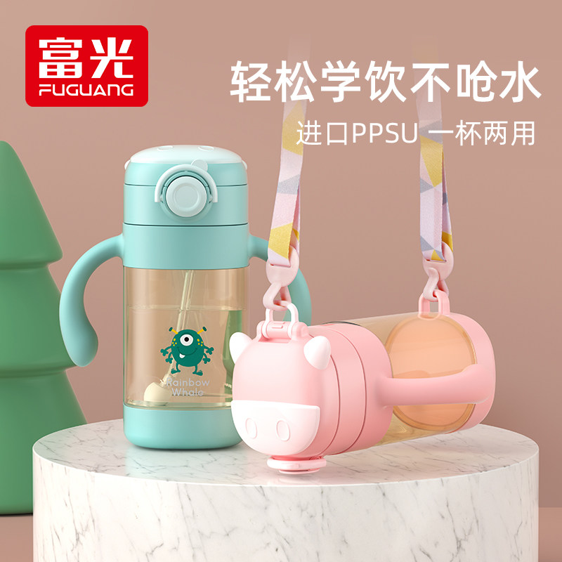 Fuguang PPSU straw cup bottle big baby learning drink cup dual-purpose infant drinking cup with handle children's water cup