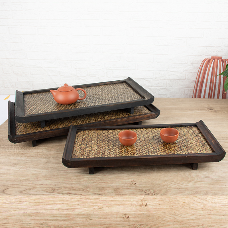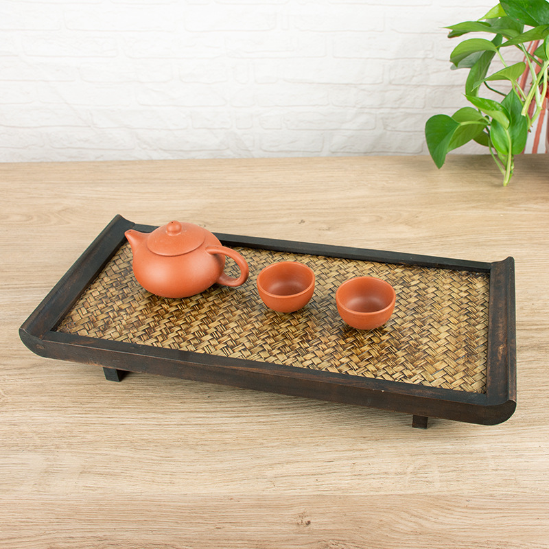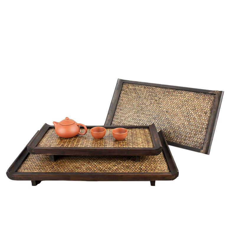 Thai tray wooden rattan Thai club beauty salon tray hotel rectangular water cup tea cup tray tea tray
