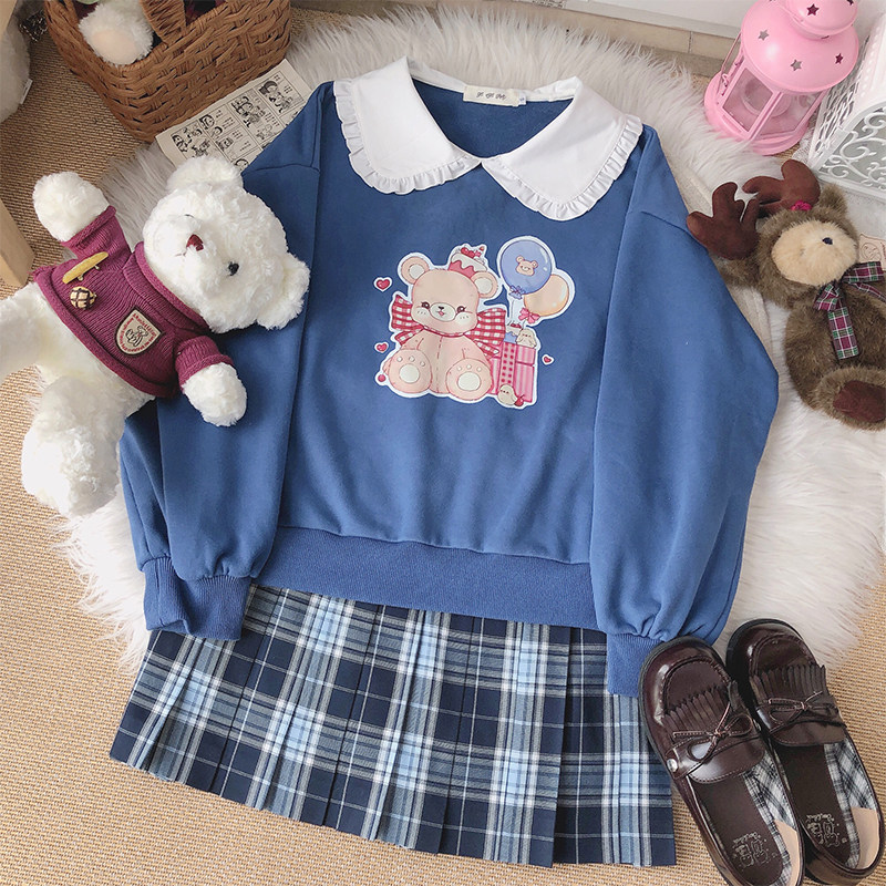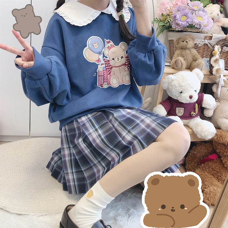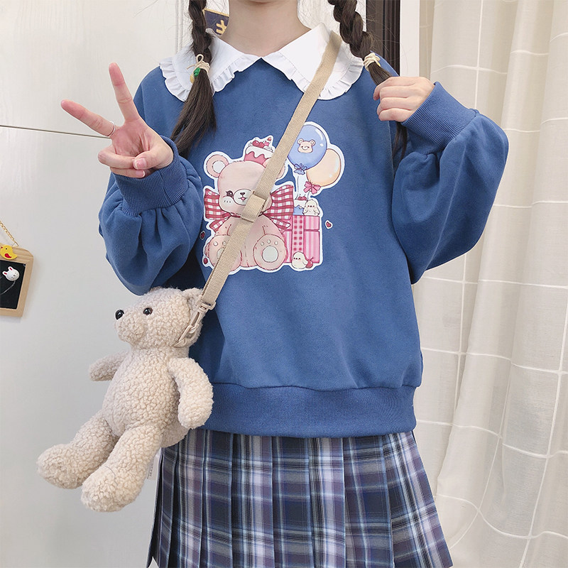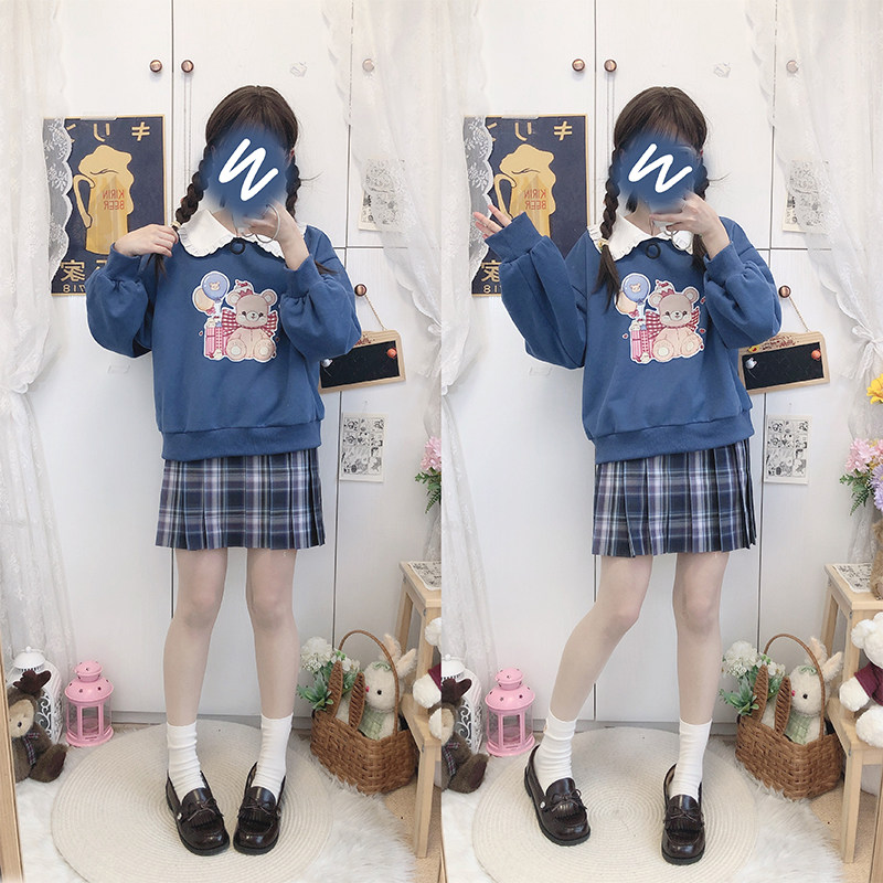 (Gift Bear) feet-feet JK original autumn and winter warm and soft girl fake two students loose long sleeve head thick cotton T