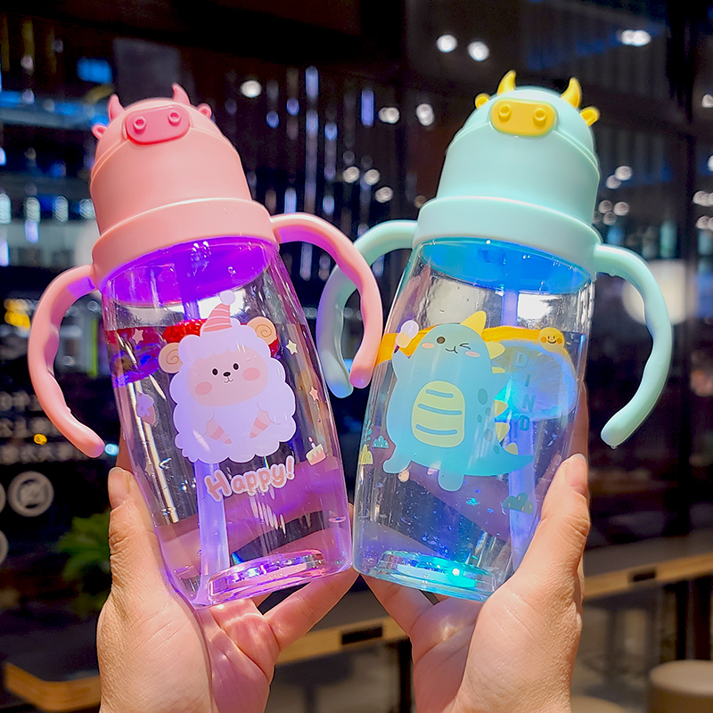 Net Red will glow cup cute cartoon children's straw cup creative trend anti-fall kindergarten baby water cup