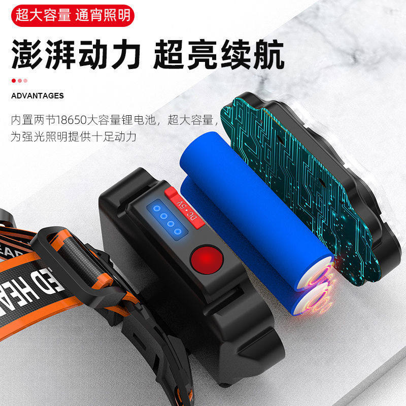 Eight-head core ultra-bright LED headlight strong light rechargeable ultra-long standby double lithium battery head-mounted miner's lamp diving